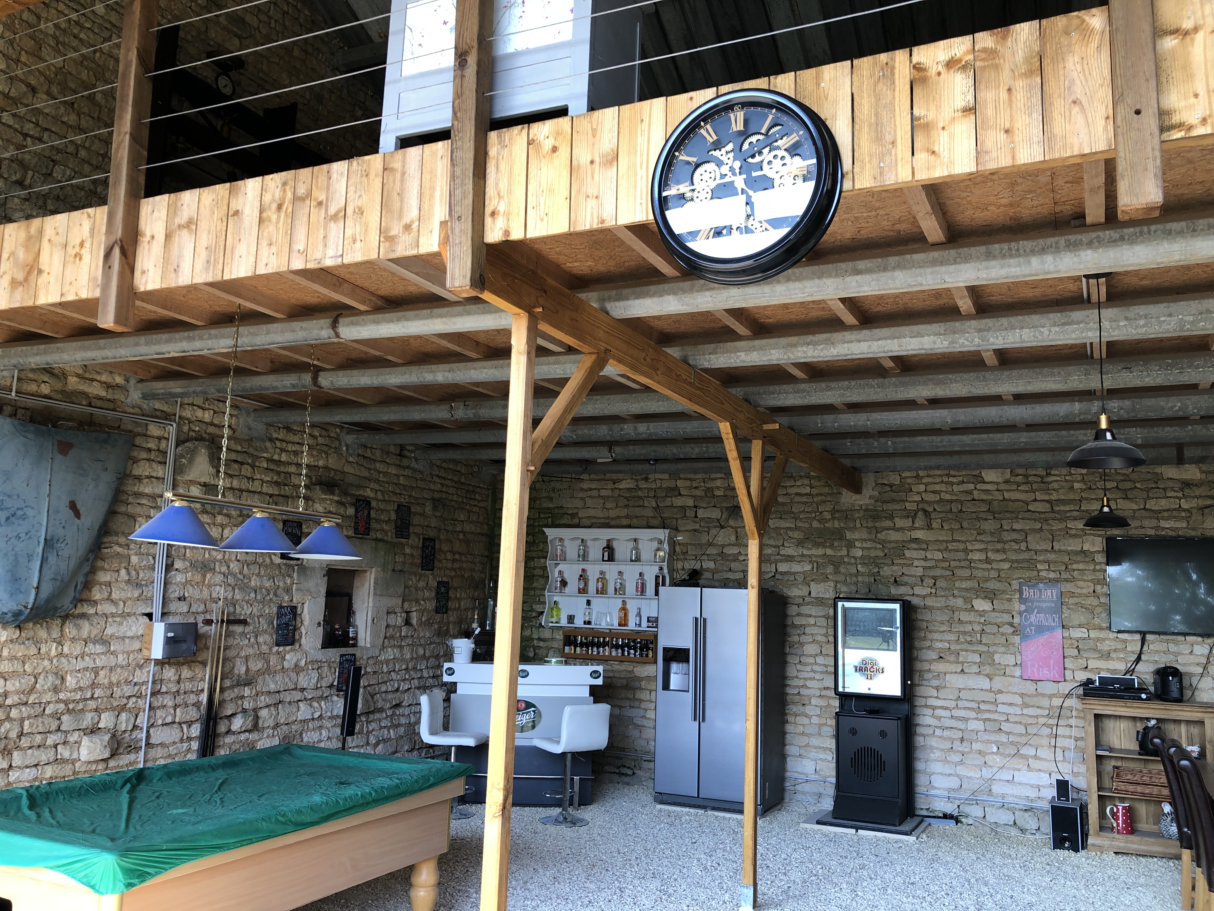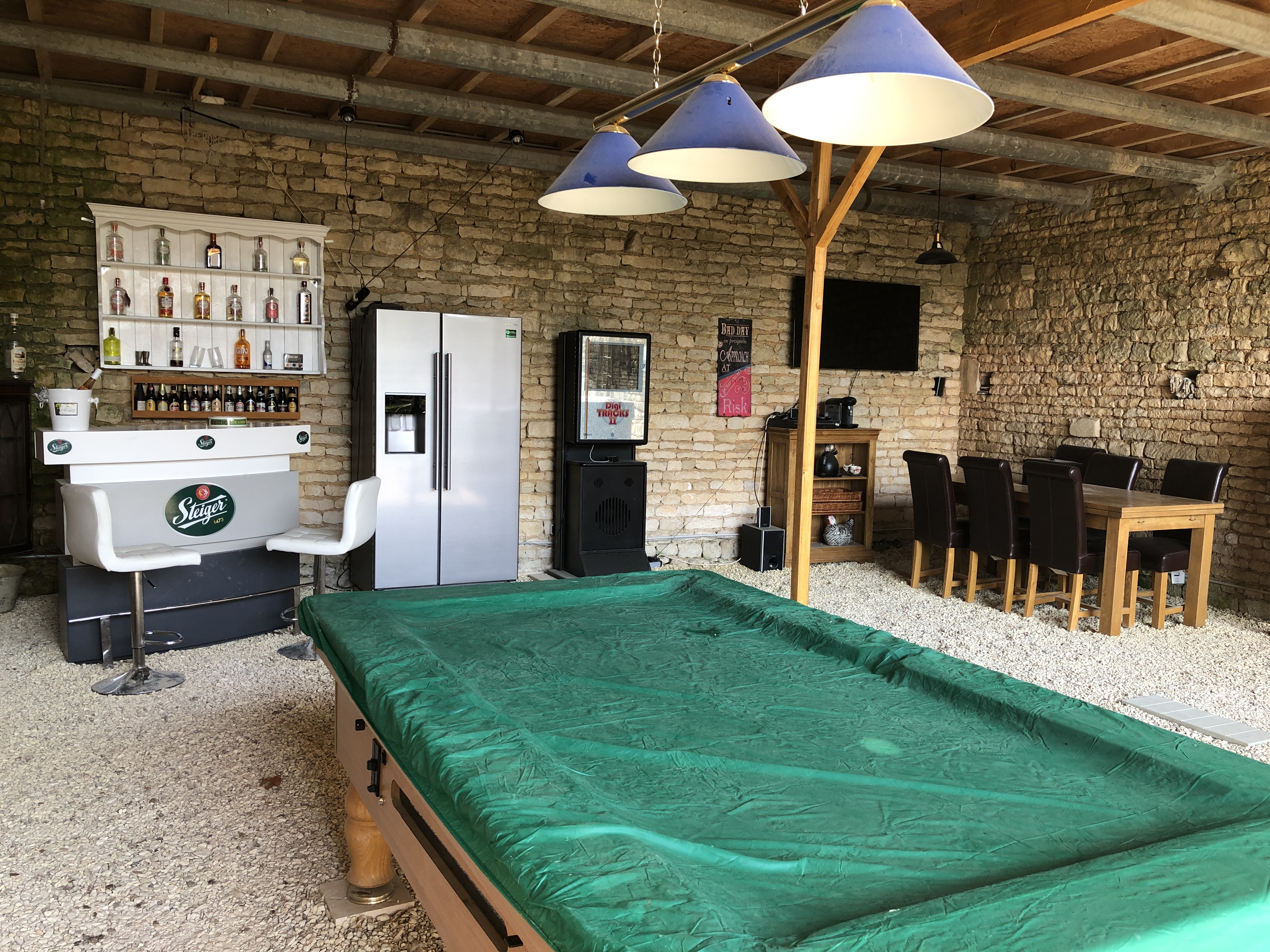 Nous sommes tombés amoureux de cette maison et espérons que nos invités l'apprécieront autant que nous. La salle à manger a une énorme table de ferme avec beaucoup d'espace pour prendre le petit déjeuner. Il y a de vastes jardins matures avec des chaises longues, un hamac, des arbres fruitiers et des dépendances. Nous partageons notre maison avec deux adorables chiens et nous avons aussi des poules et des canards - qui ont leur propre logement dans le jardin ! Nous avons un espace de divertissement / détente génial, photos ci-dessous. Au rez-de-chaussée il y a une table de billard, un jeu de fléchettes, une télévision, un bar et un coin repas. La mezzanine au-dessus dispose d'un confortable salon/coin lecture et de jolies vues sur le jardin et la campagne au-delà. Les étoiles par nuit claire sont tout simplement époustouflantes.